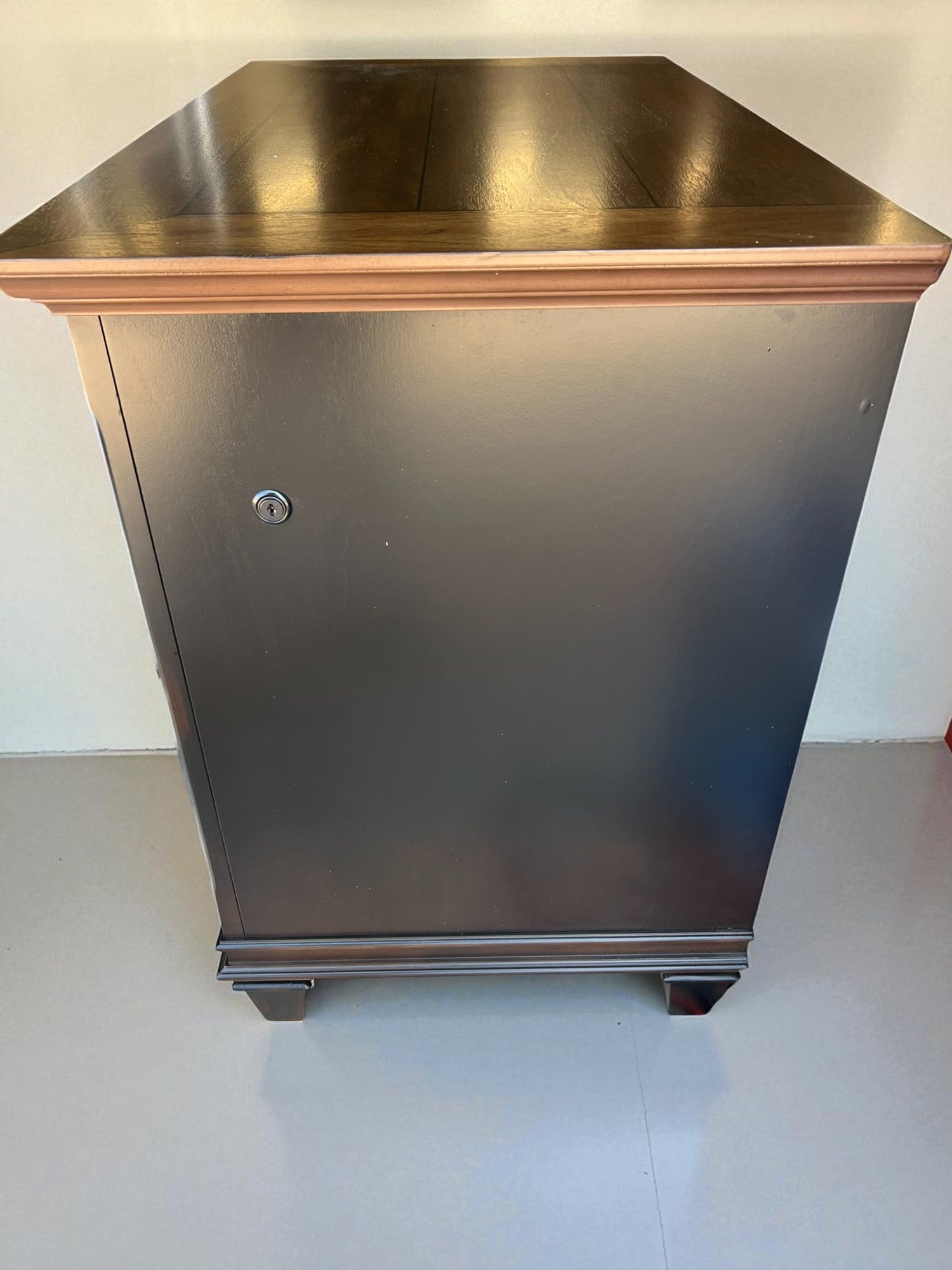 The Hartford Lateral File Cabinet combines bold craftsmanship with vintage-inspired detailing. Finished in a rich black with weathered rub-through accents and a contrasting wood plank top, it’s both functional and stylish. Industrial touches like wire mesh panels and metal accents give this cabinet timeless character.
