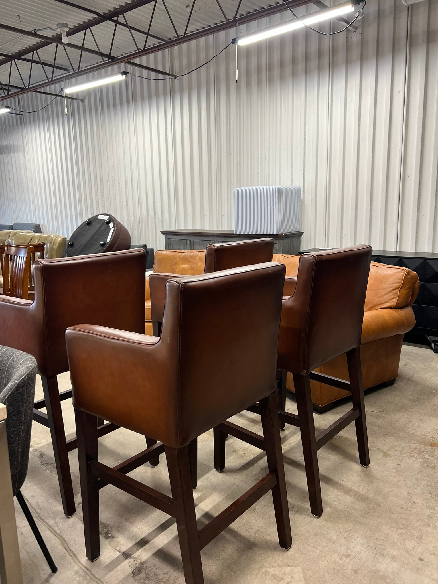 Pottery Barn Classic Upholstered Leather Barstools (Set of 4)