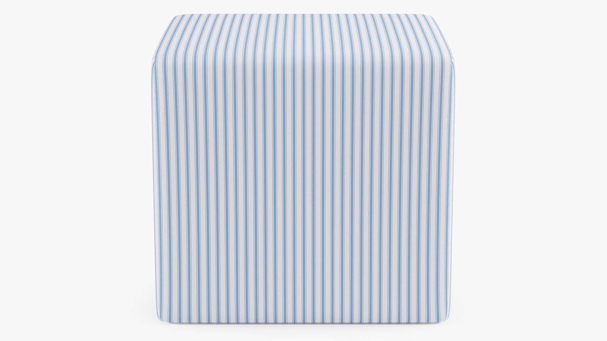 This versatile Cube Ottoman is upholstered in Cornflower Classic Ticking Stripe, combining vintage charm with modern function. Crafted with a sturdy pine wood frame and plush filling, it's perfect as extra seating, a footrest, or a stylish side table. Compact and lightweight, it adapts effortlessly throughout your home.